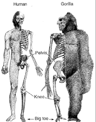 -Bipedalism-humans walk upright habitually -great apes typically “knuckle walk” -human foot become less grasping -big toe straightened