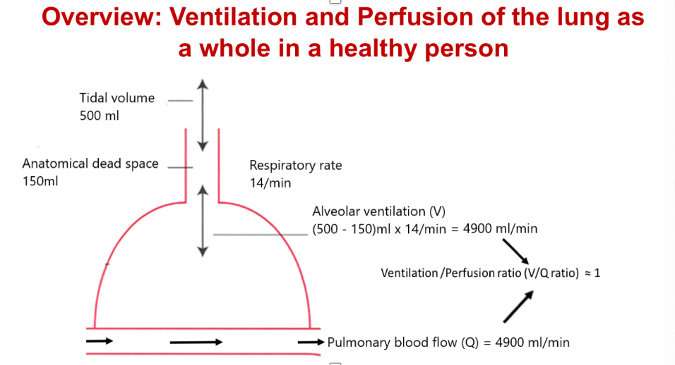 ventilation and perfusion of the lungs as a whole in a healthy person