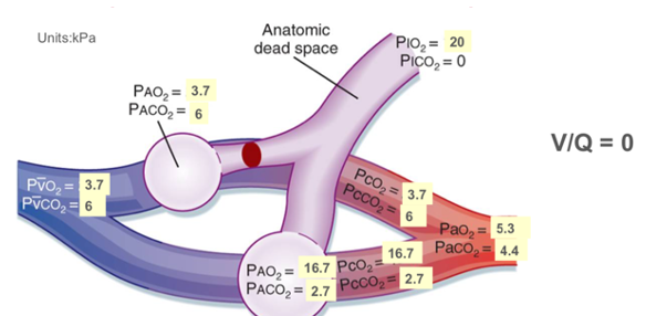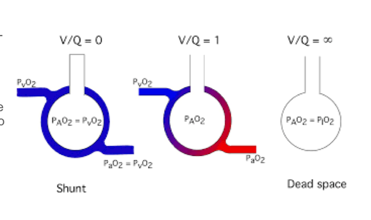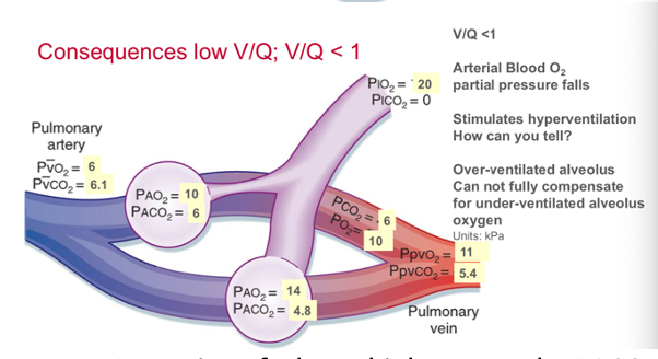 diagram showing consequence of low V/Q: V/Q <1