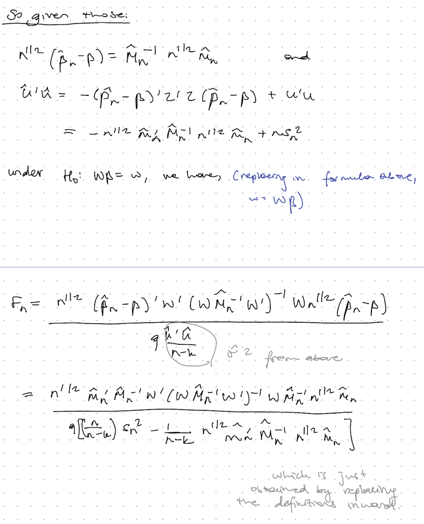 Rewrite the test statistics in terms of what you have derived, and show the denominator derivation in detail.