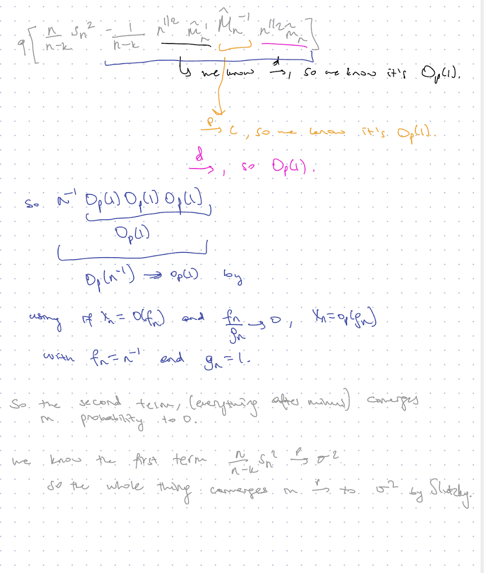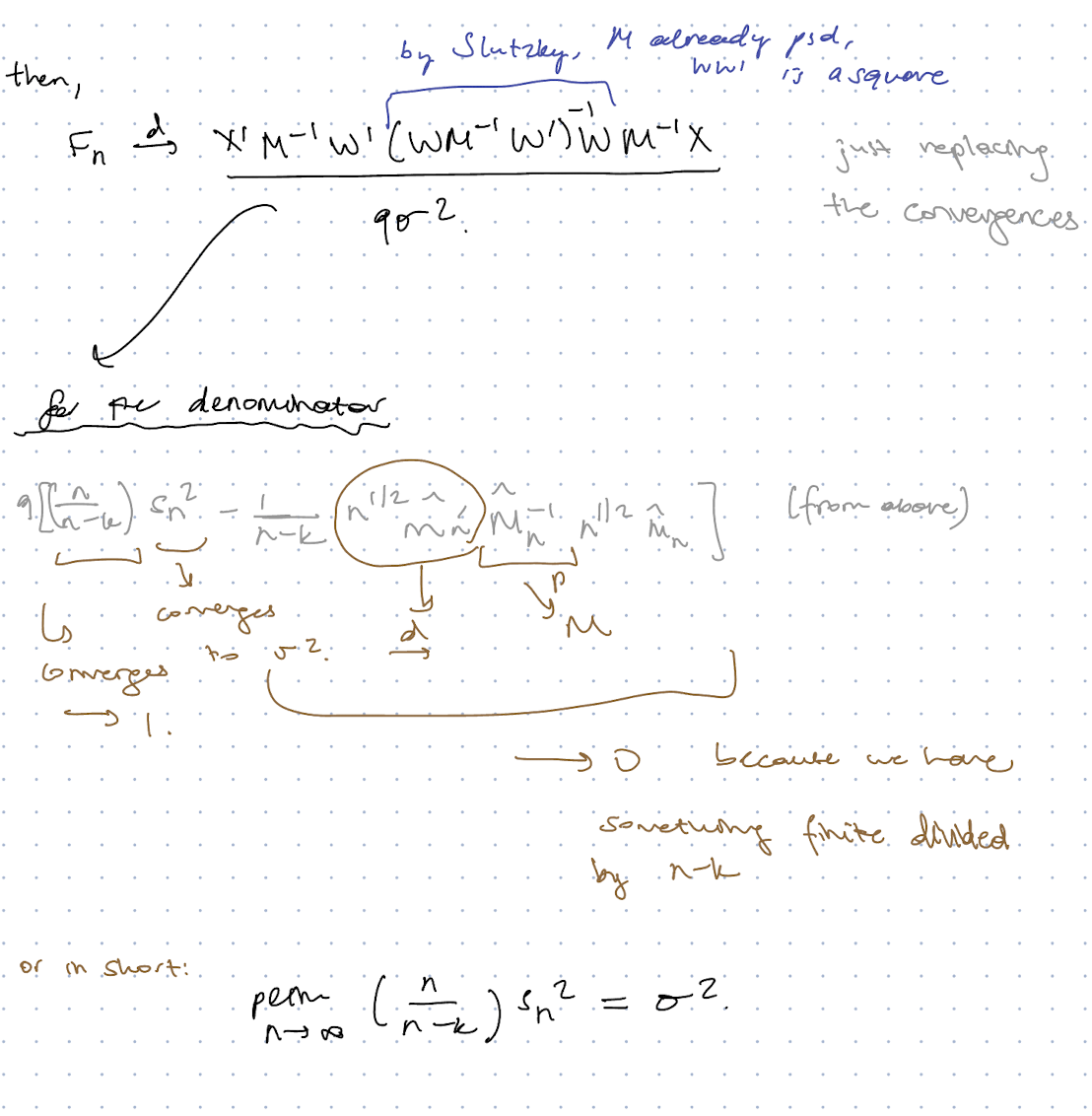 Given the denominator from hypothesis testing, show another way to see convergence to q*sigma squared.