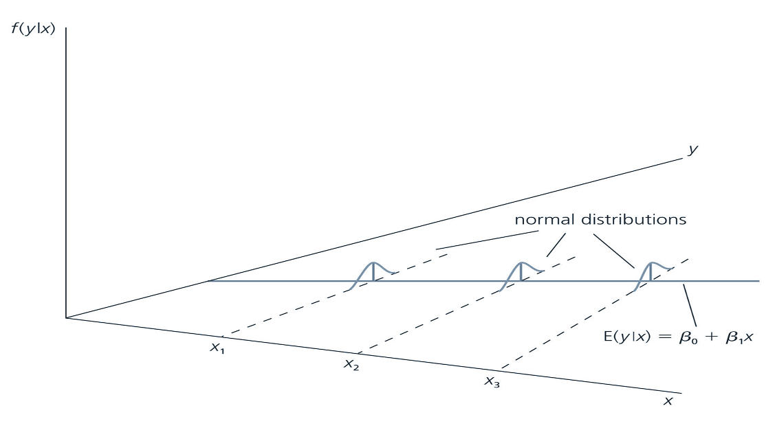 i.e., conditional on π, π¦ has a normal distribution with a mean that is linear in π and a variance that is constant irrespective of π