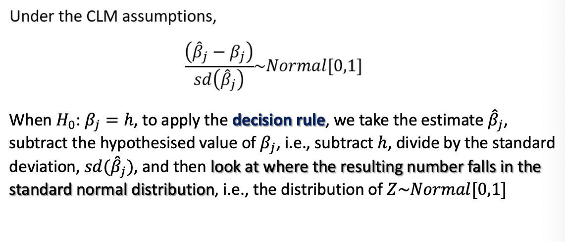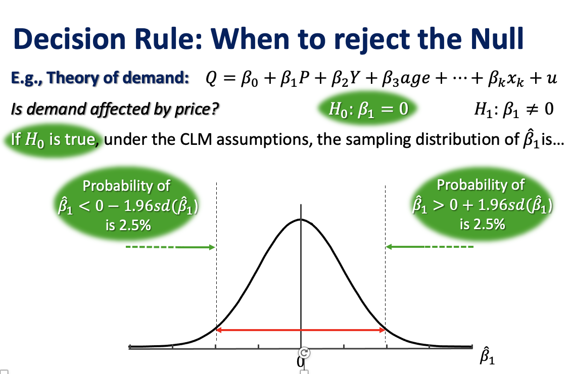 Reject π―π if it implies that the probability of getting the estimate that OLS yields is less than a small preselected probability (e.g. 5%)