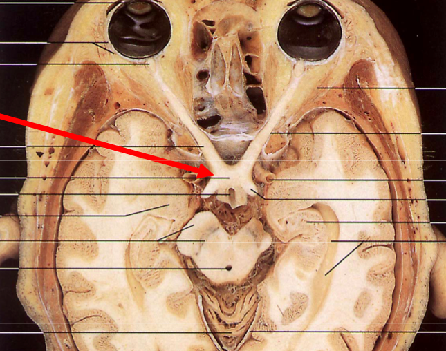 Where is the optic chiasm and what happens there?
