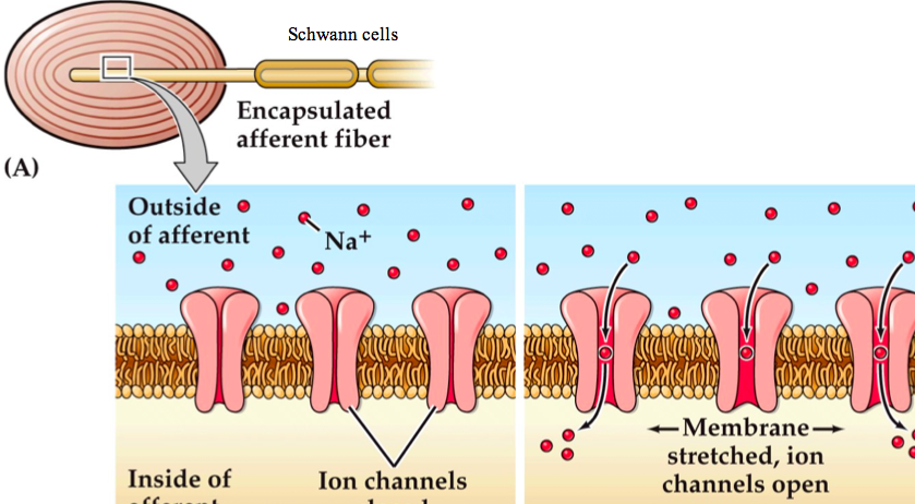 How does transduction work in mechanoreceptors (afferent fibre)?