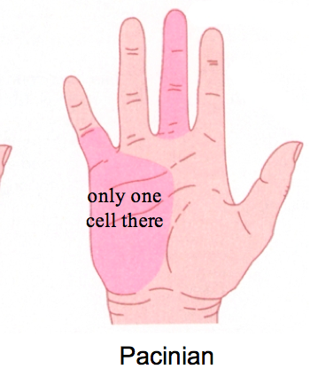 How much of the total do the Pacinian receptors make up and how big are their receptive fields?