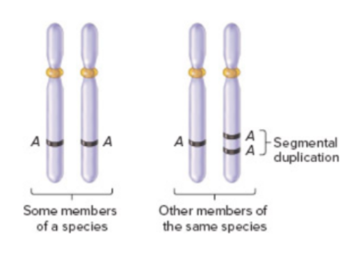 When sections of the chromosome are tandemly repeated. The number of repeats in the genome varies between individuals.