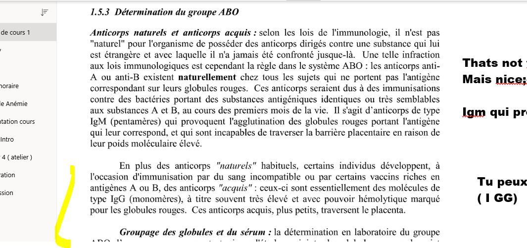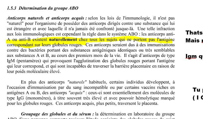 IGM mainly dans ABO ( MAIS ATTENTION ,, peuvent développer IgG Acquis par des vaccins ou si recoit transfusion incompatible)