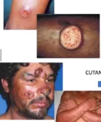 Difuza: Lesión primaria no en úlcera, falta de respuesta inmune a diseminación de antígenos, diseminación tisular, linfa o vía sanguínea; cara o extremidades,no afecta cuero cabelludo No es nada común
