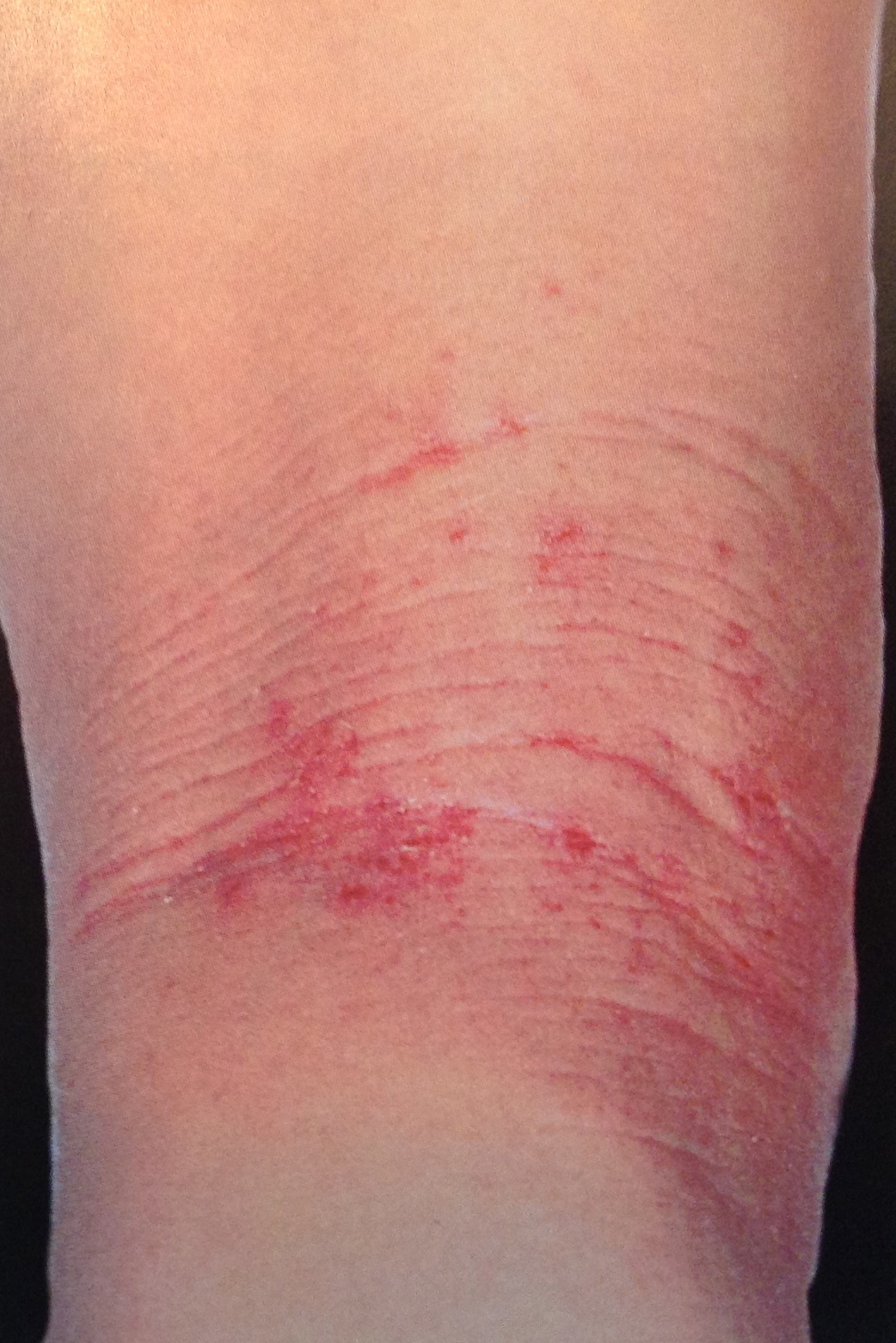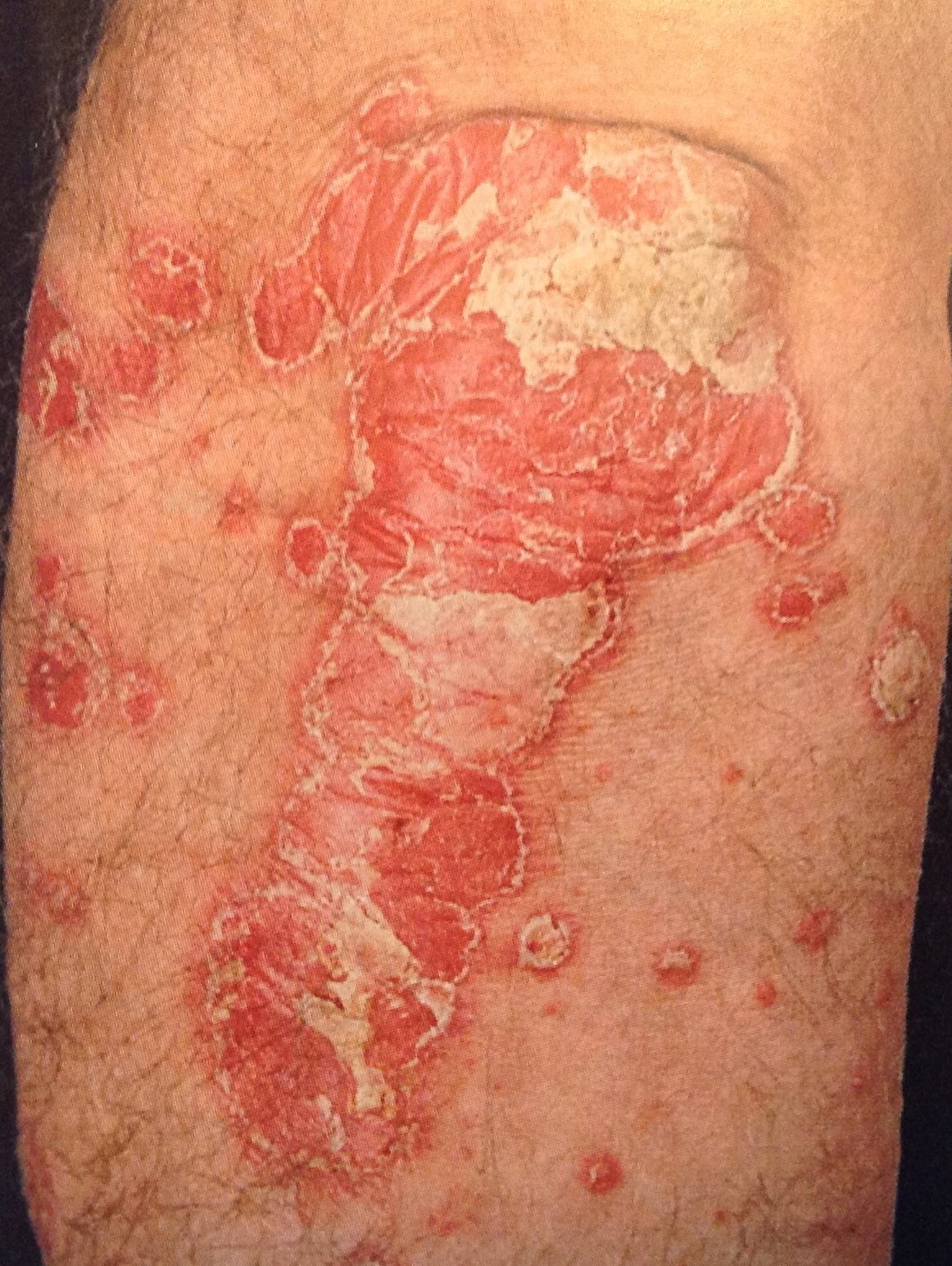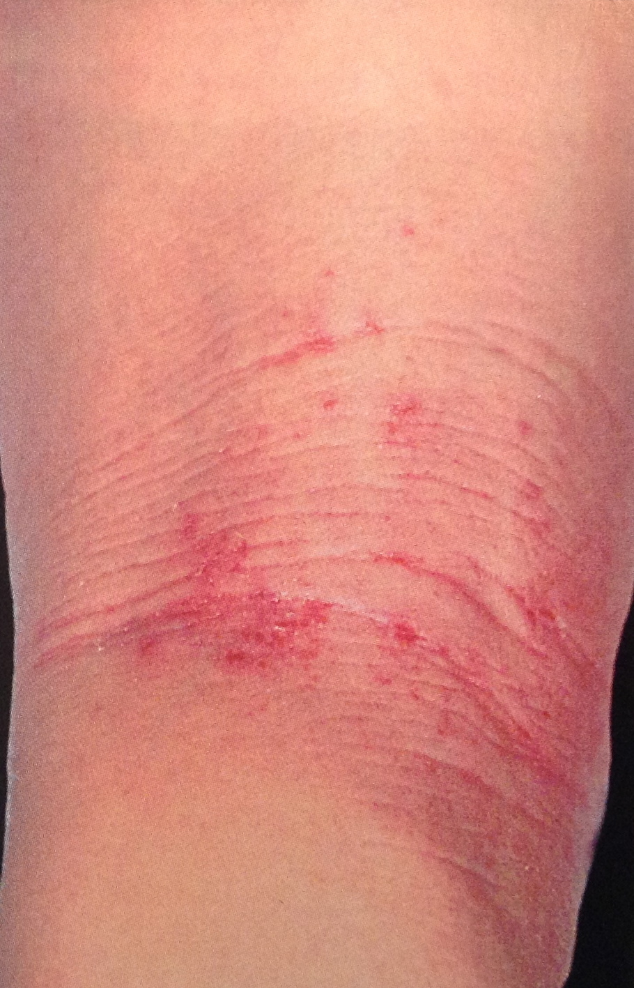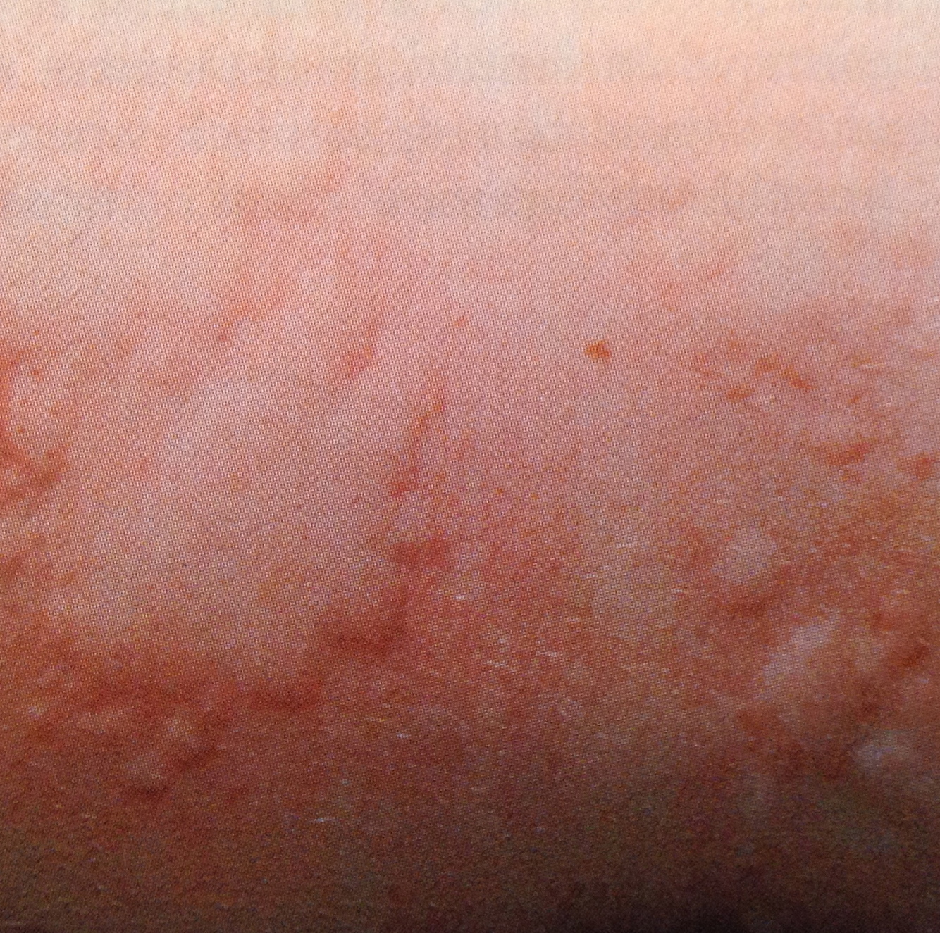 Thickening of the epidermis and some changes in the dermis may be due to continual rubbing of the skin