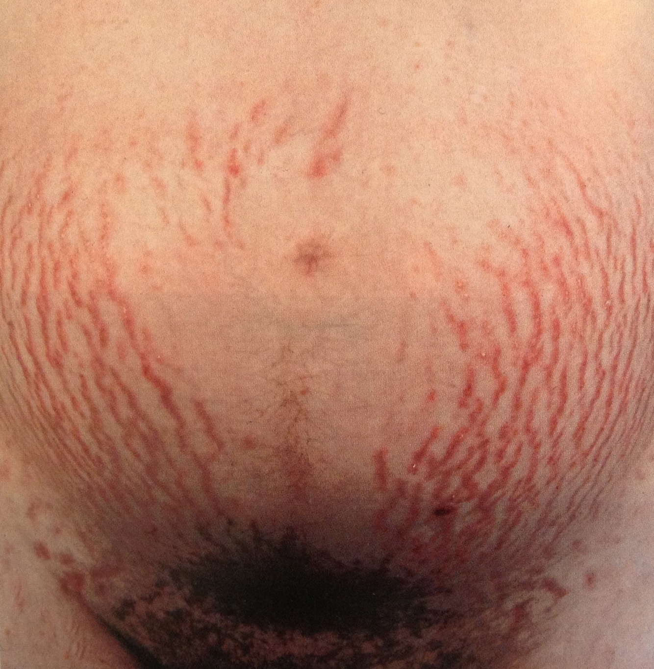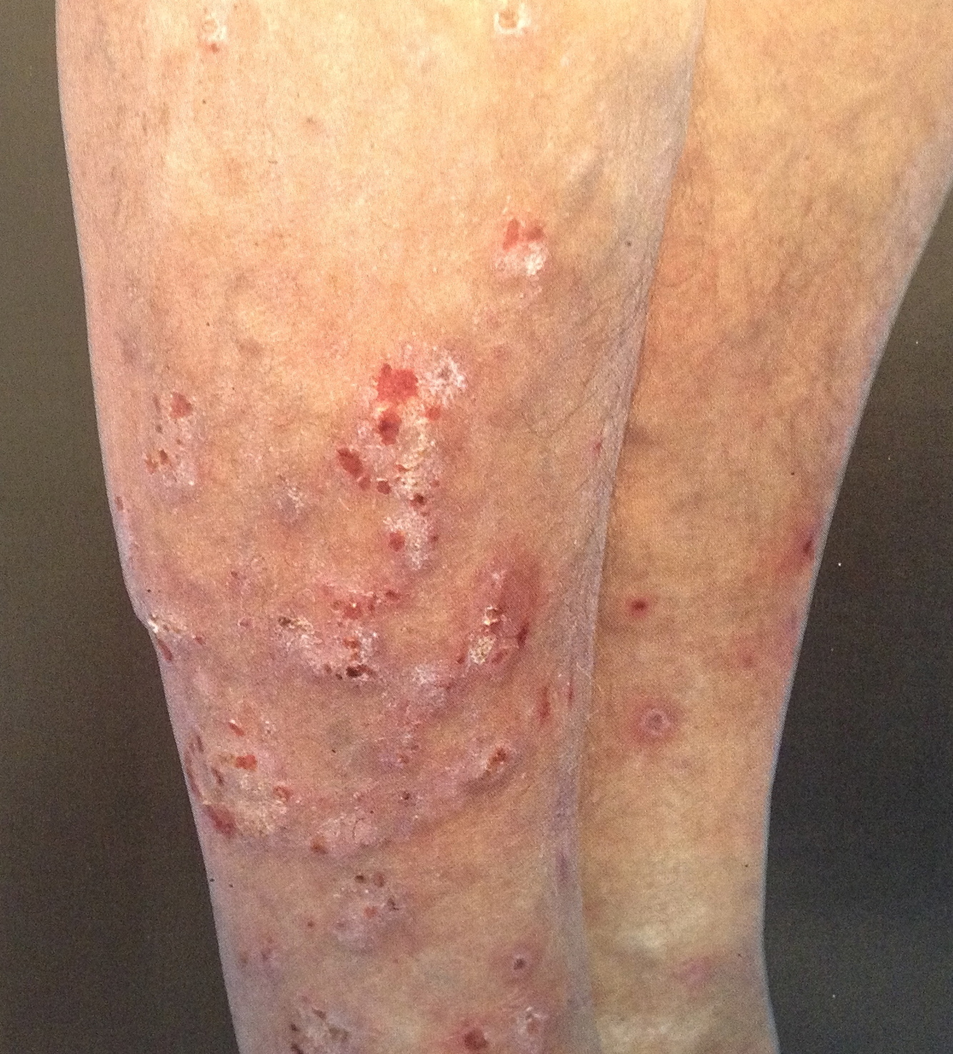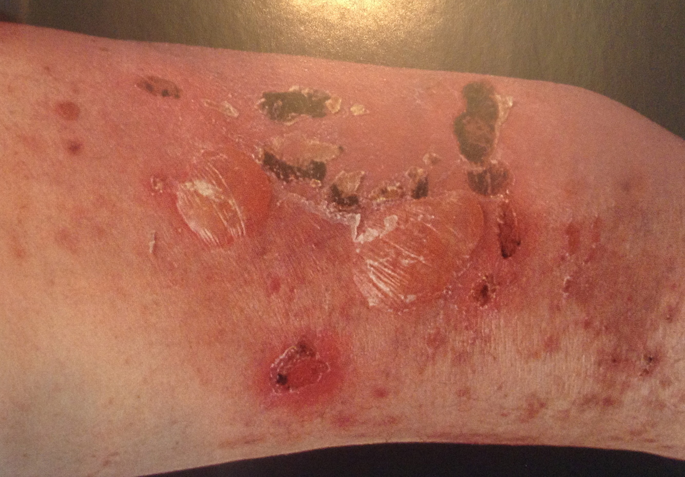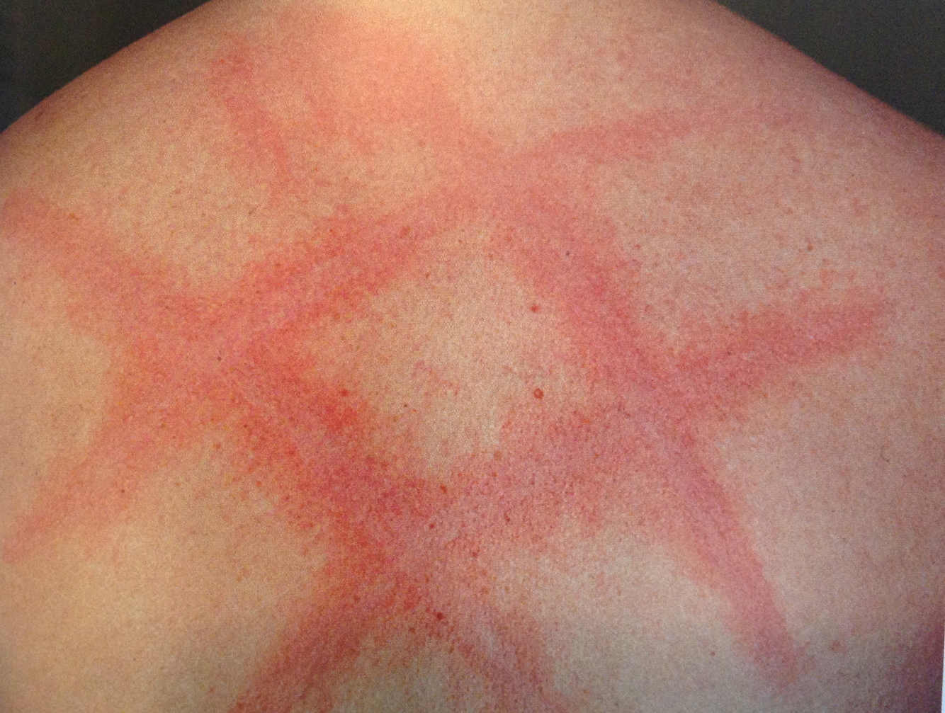Thickening of the epidermis and some changes in the dermis may be due to continual rubbing of the skin