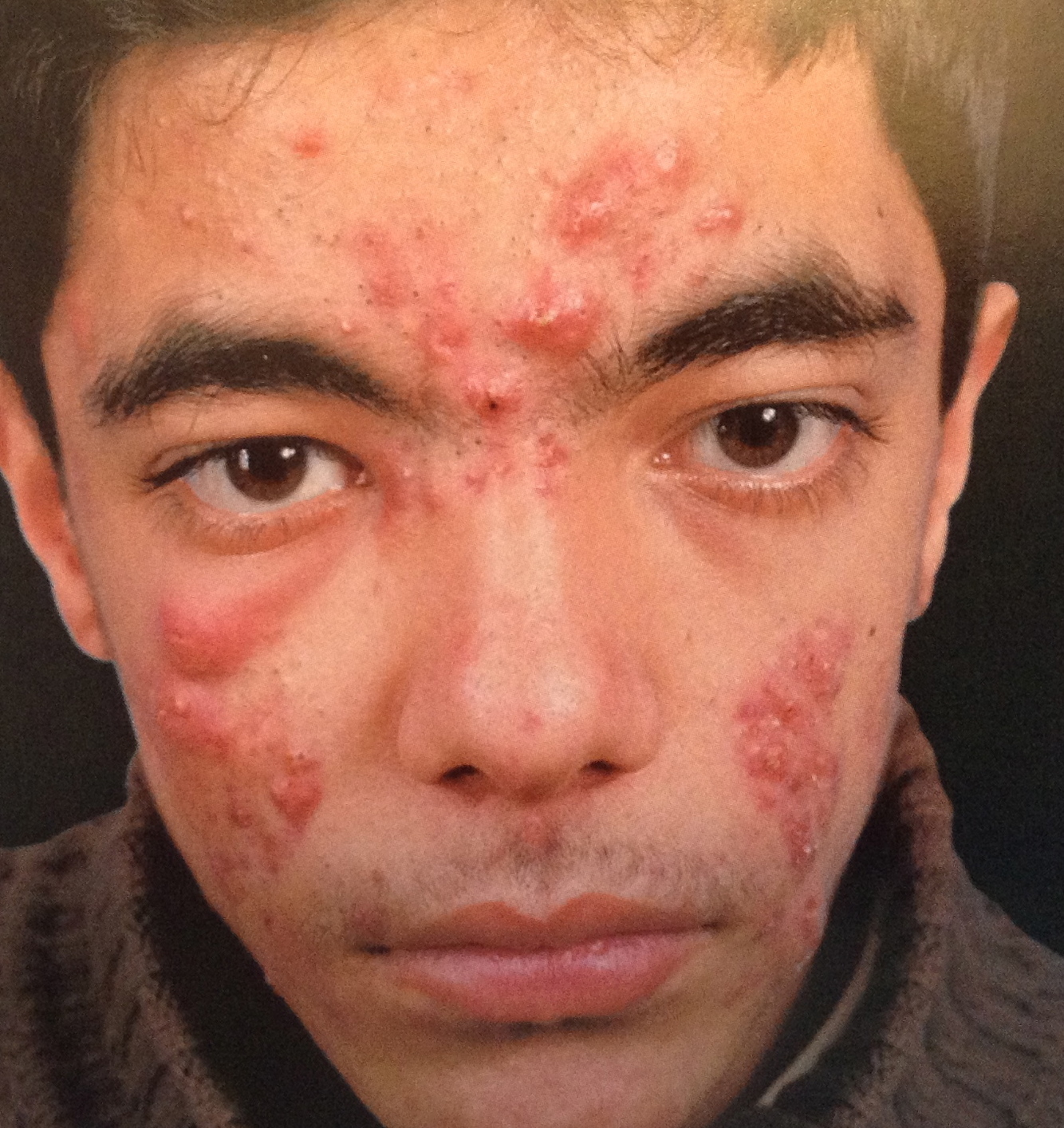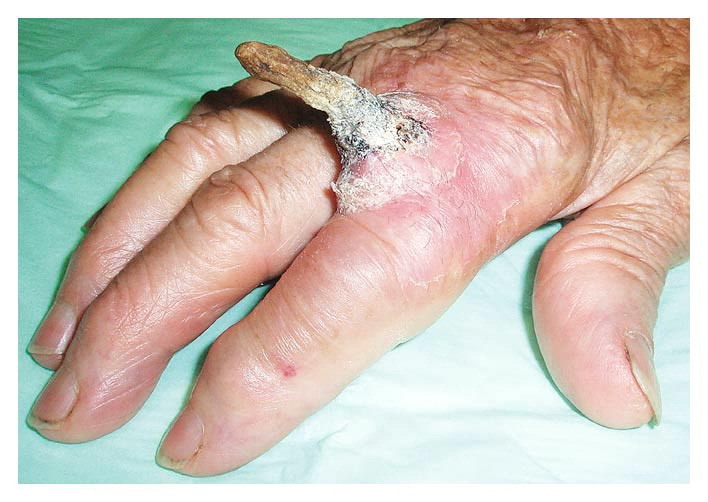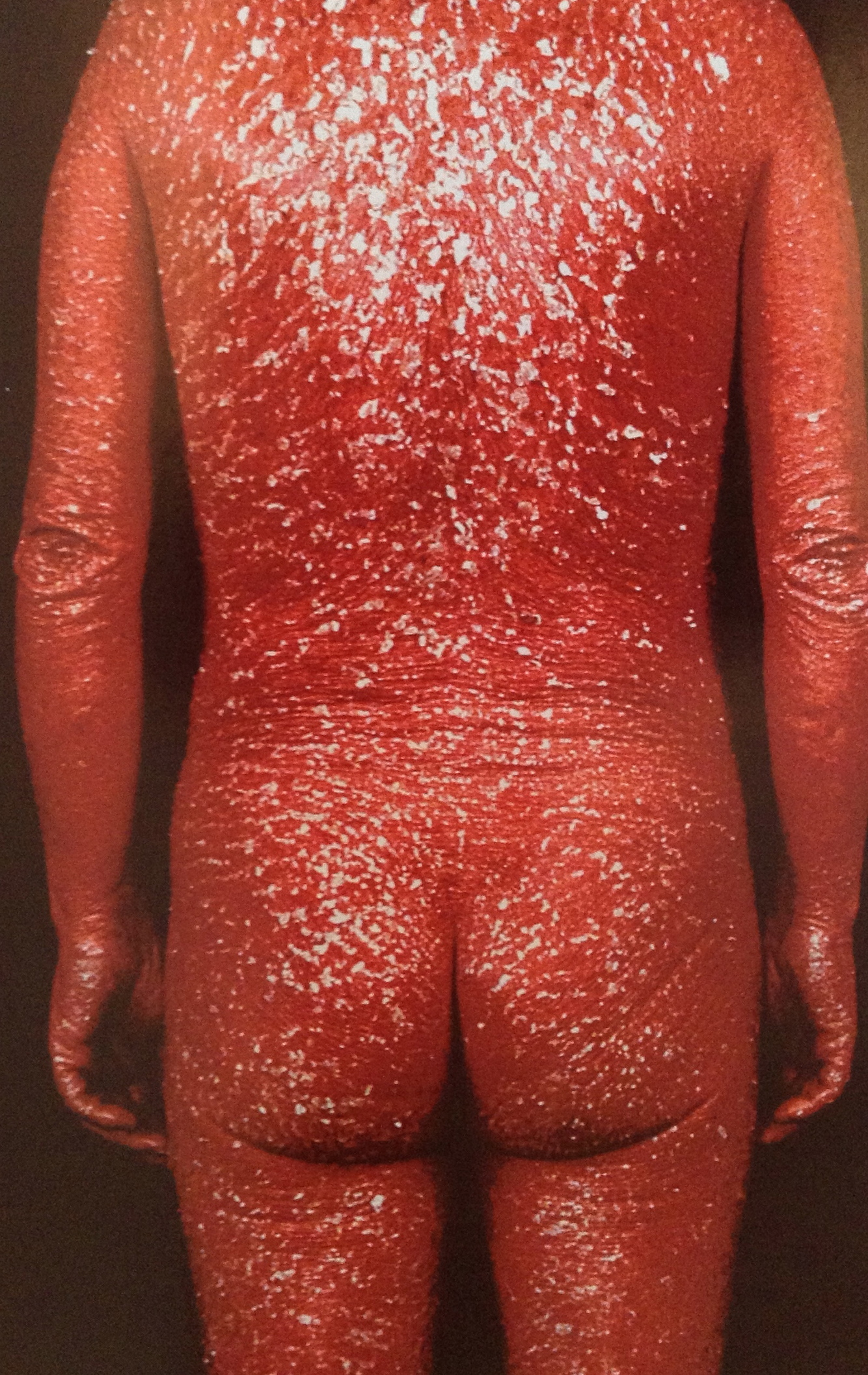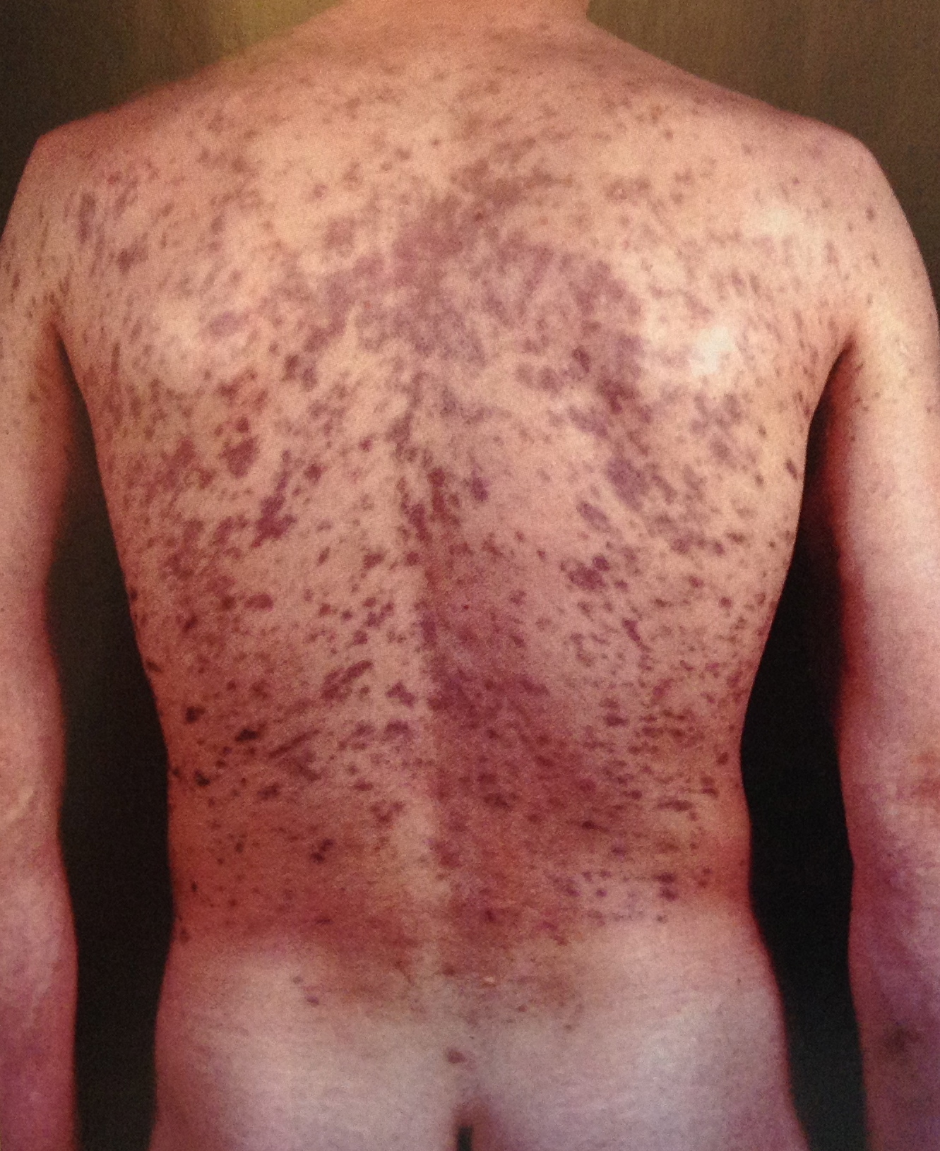 Thickening of the epidermis and some changes in the dermis may be due to continual rubbing of the skin
