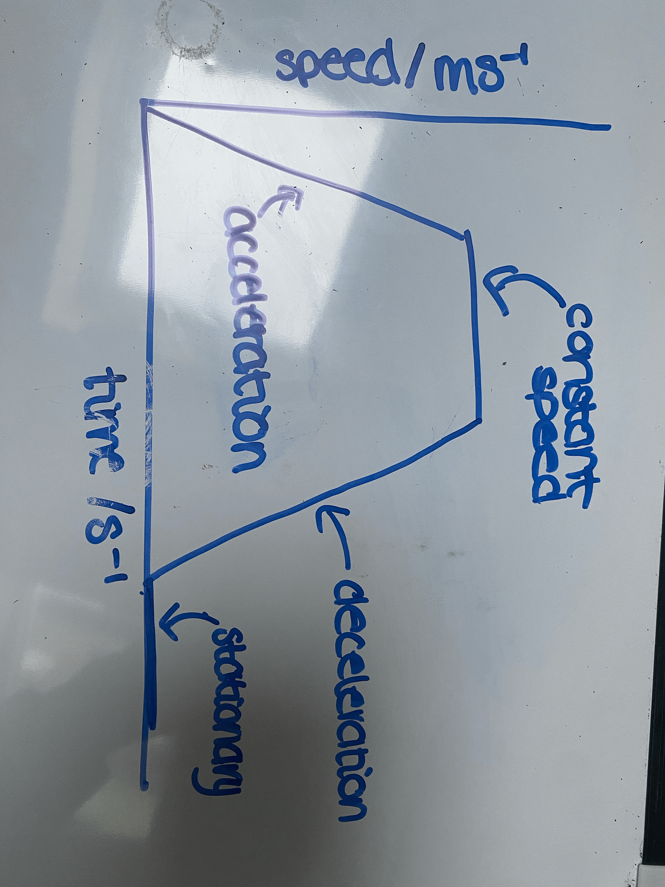 sketch speed time graph for acceleration, deceleration, constant speed and at rest.