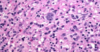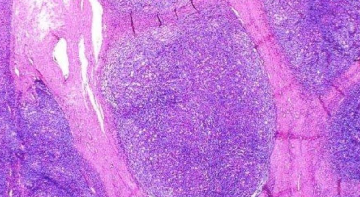 Las células neoplásicas son escasas y el fondo es inflamatorio reactivo.