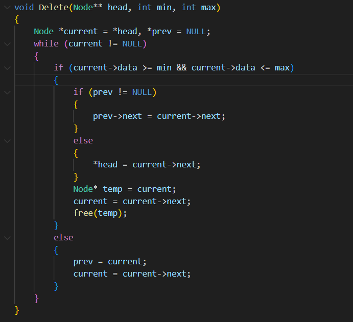 Delete : 删除大于min小于max的节点