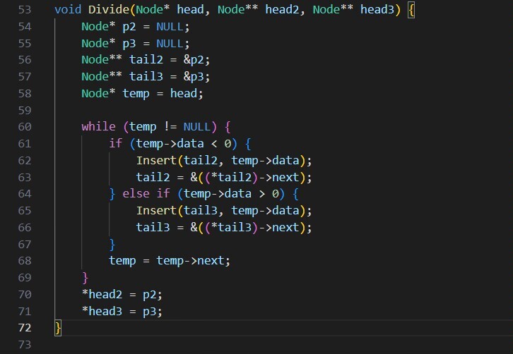 Split :分开两个链表,一个大于0,一个小于0