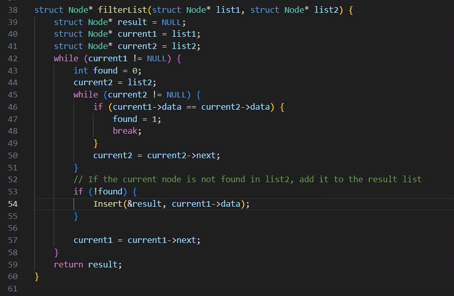 Filterlist : 传入两个链表,传出只有一个只包含第一个链表中独有元素的新链表(only in A )