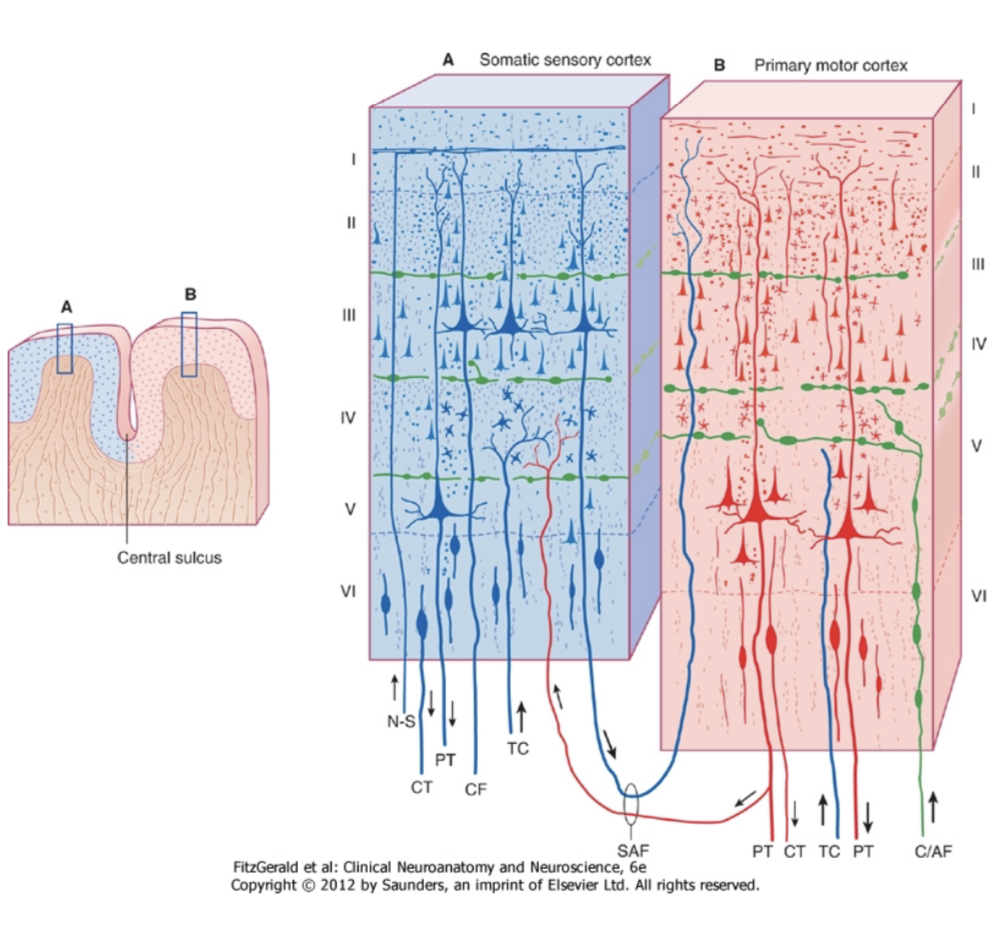 The primary motor cortex is found in the pre-central gyrus