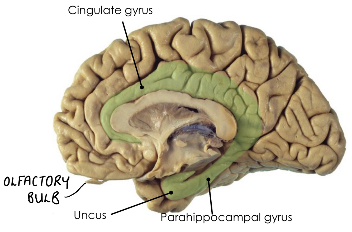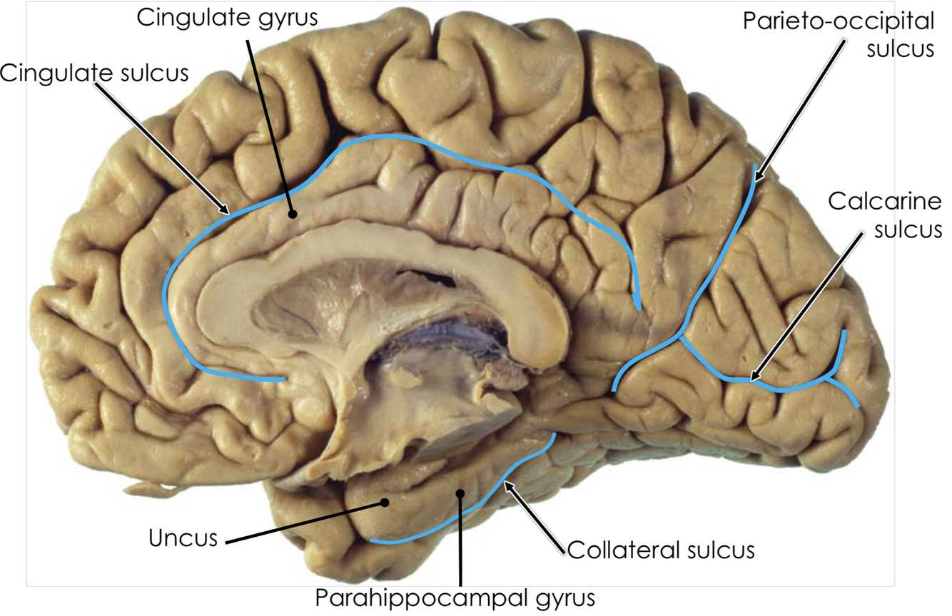 What is significant about the cingulate gyrus and parahippocampal gyrus?