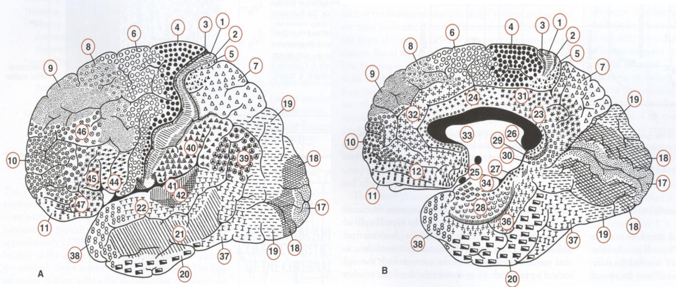 What is meant by Brodmann’s areas?