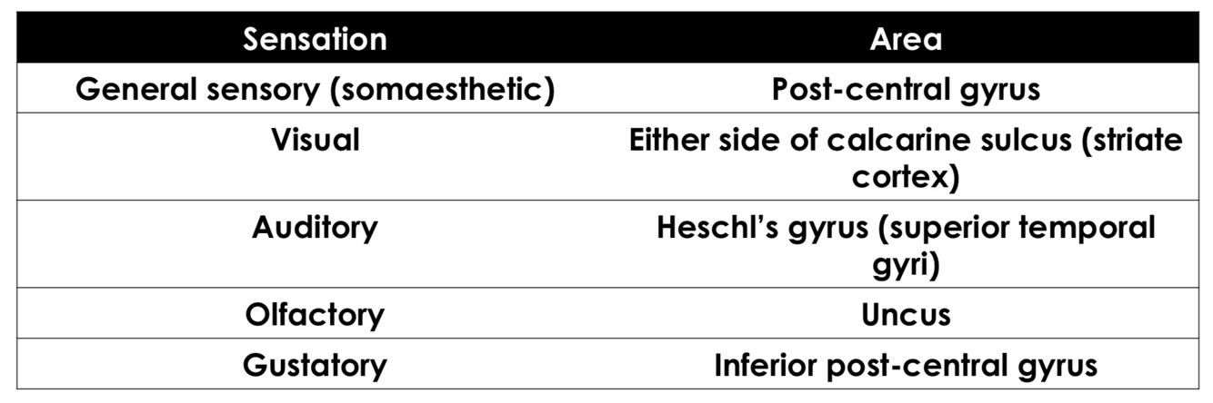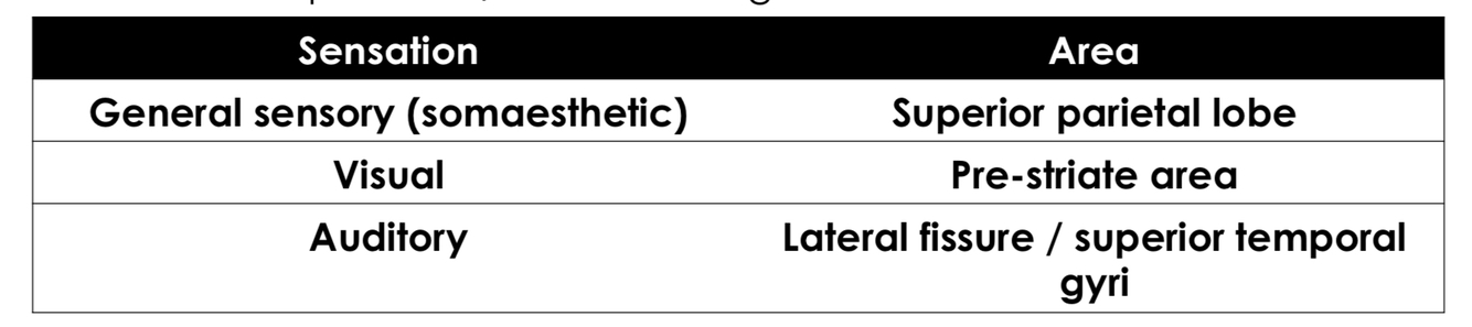 sensory areas: