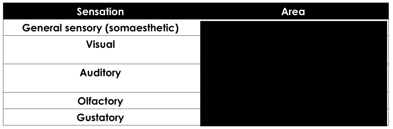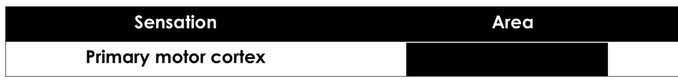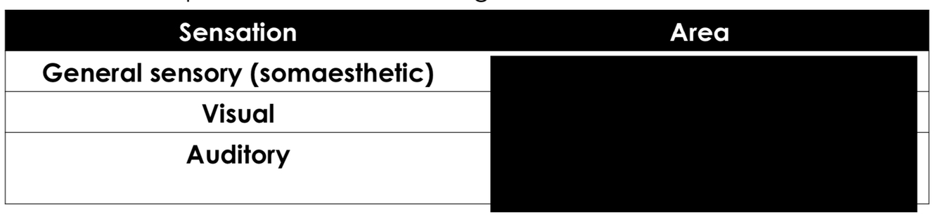 In which primary projection area are the following sensations located?