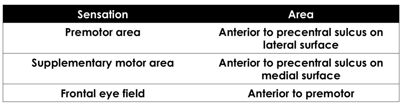 Where are the following secondary motor areas located?