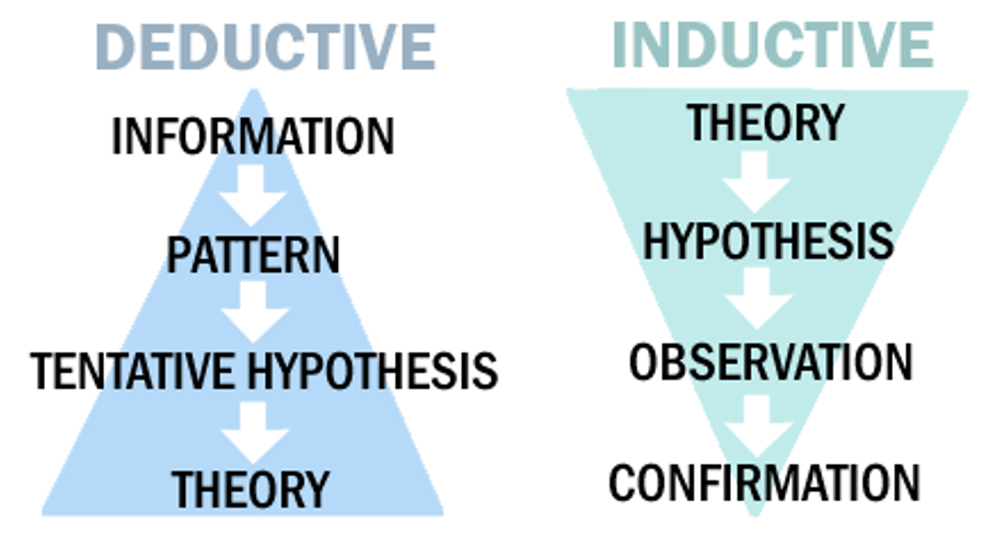 Inductive logic starts with a theory which is used to reach observations and a conclusion.