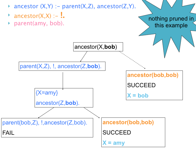 • Cut “prunes” the search tree of all other siblings to the right of the node containing the cut.