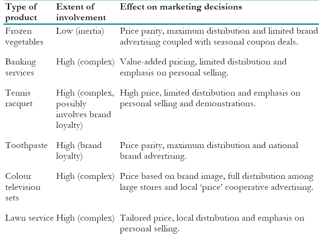 How would you classify the following products/services in terms of the extent of involvement? How would your ‘classification’ affect your recommendations regarding what pricing, distribution, and promotion decisions to make?
