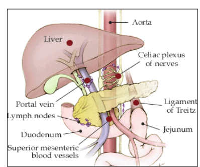 *ligament of Treitz: connects duodenum to the diaphragm and divides it from jejunum