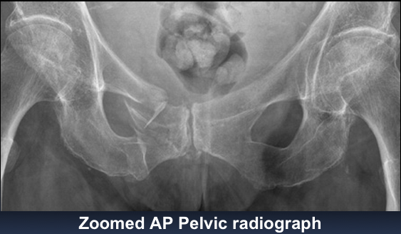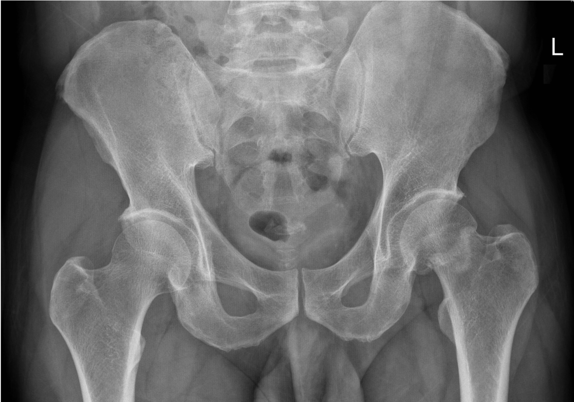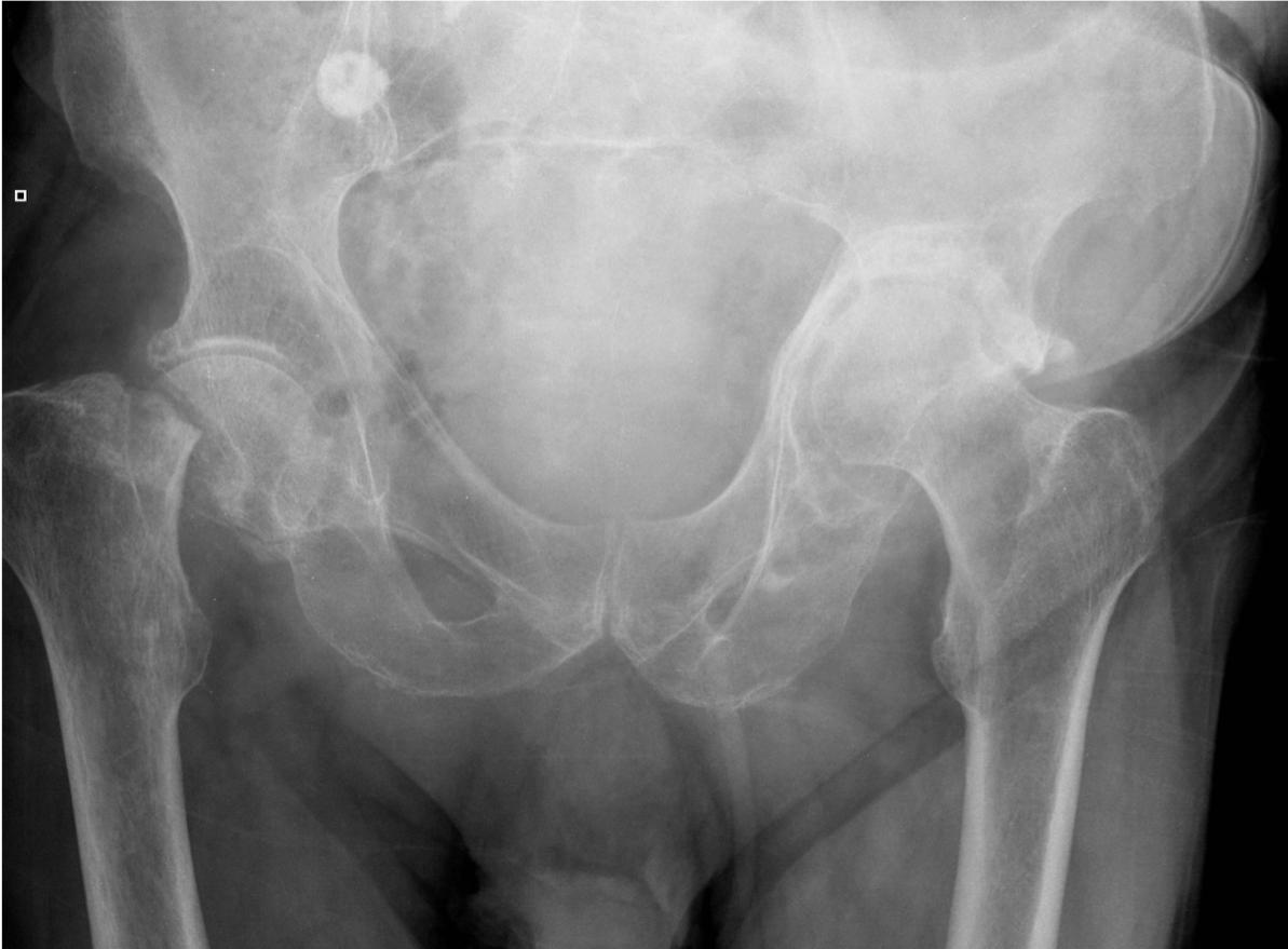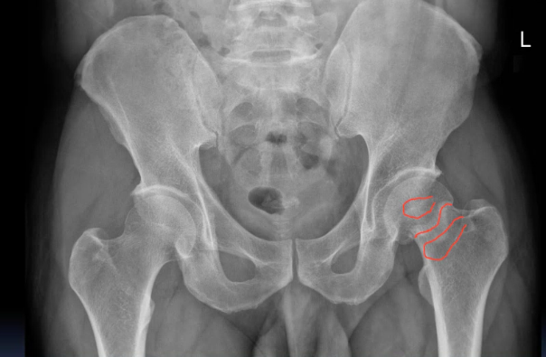 An 48 year old man presented to the ED with 3-day history of left hip pain after falling in the shower. He was struggling to walk. On examination his left leg was a little shorter than the right and slightly laterally rotated.
