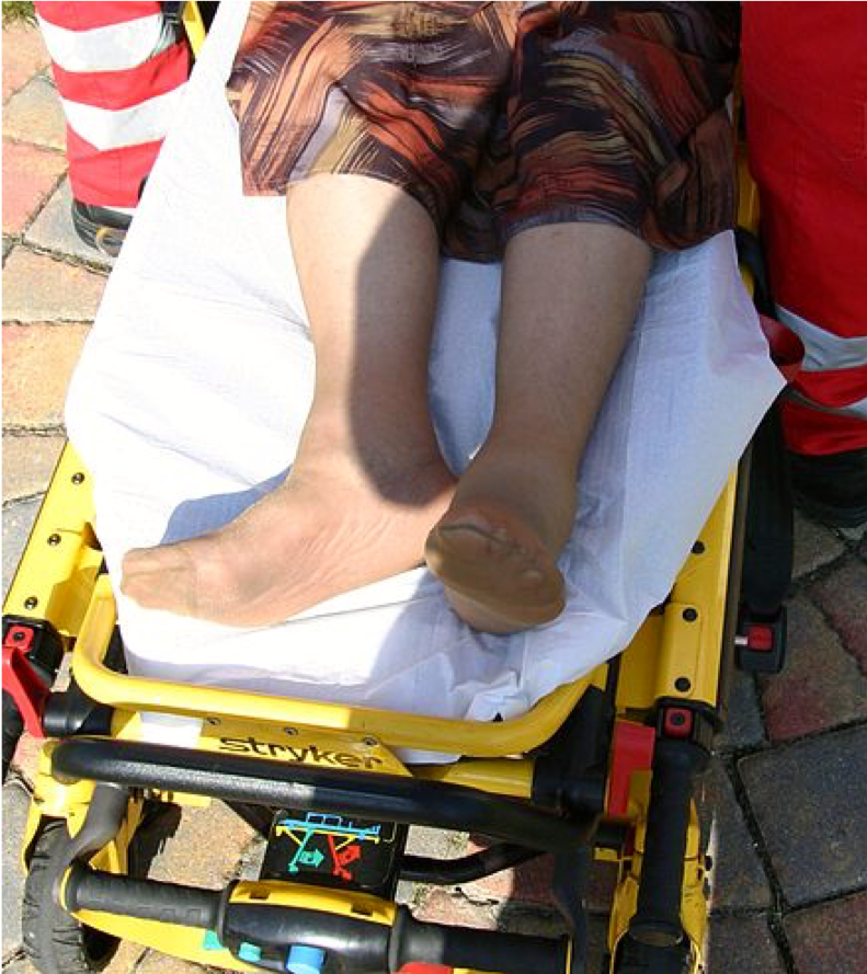 A 78 year old woman fell in her home. She could not get up again due to pain in her right groin. An ambulance was called.