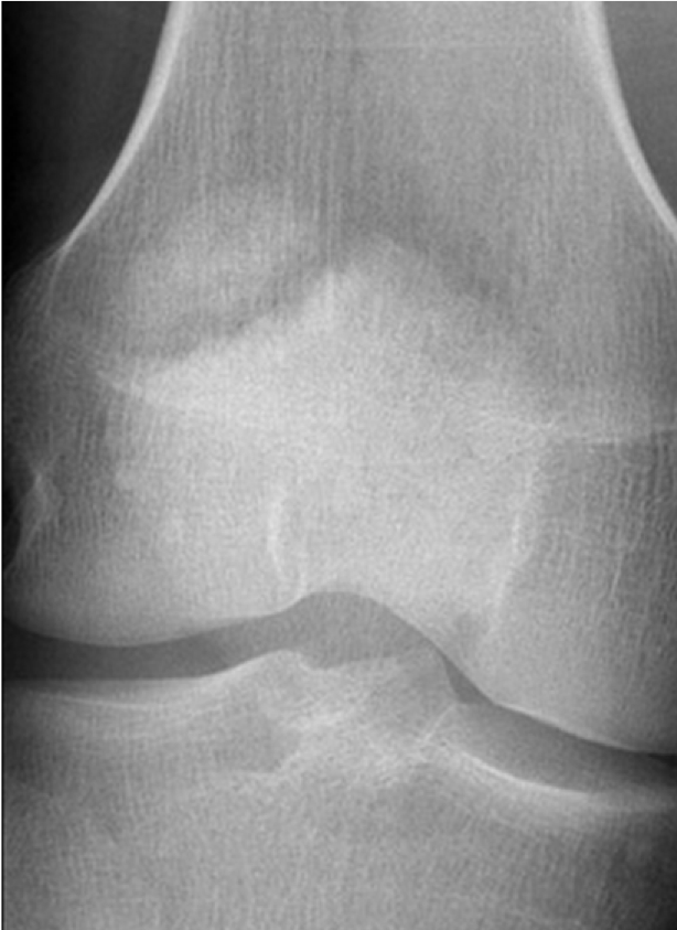 On examination there was no deformity, but it was painful for him to weight-bear. Movements of his knee were painful, and this limited his movements.
