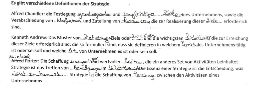 Strategie ist das Treffen von …………………….. im …………………….. Die Essenz einer Strategie ist die Entscheidung, was