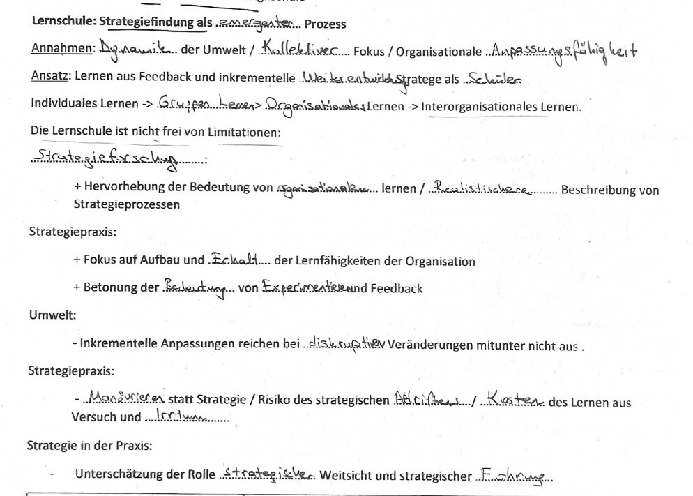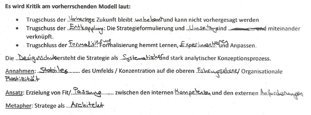 - …………………….. statt Strategie / Risiko des strategischen ……………………./ ………………… des Lernen aus