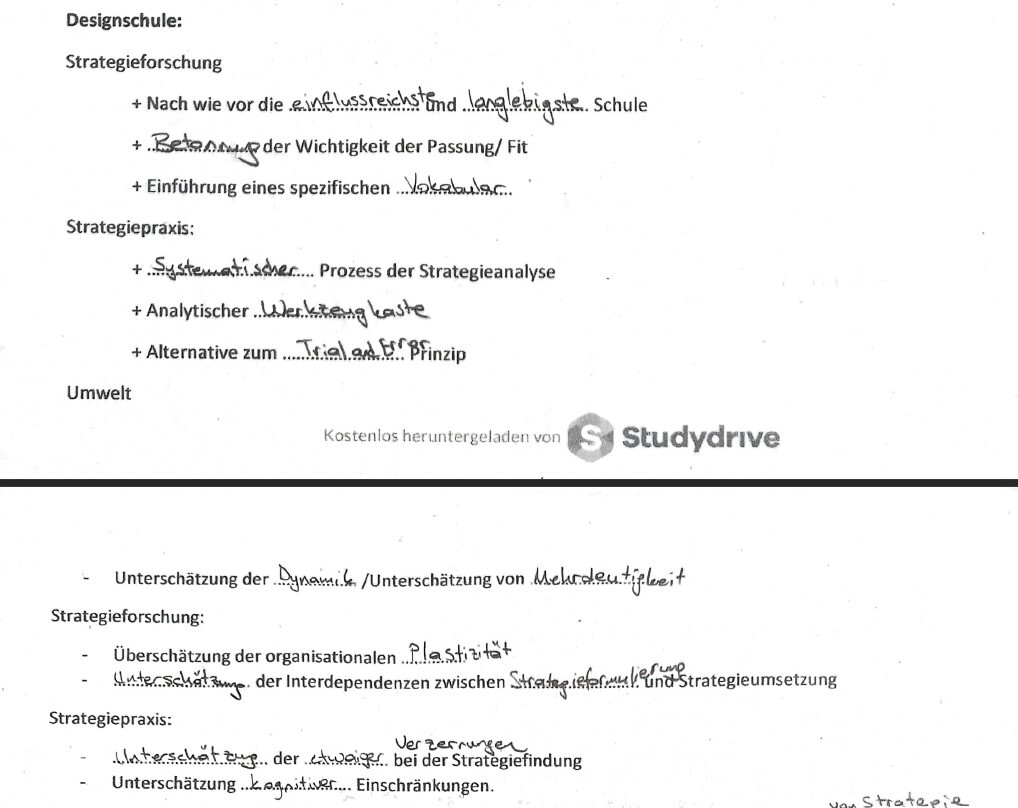 Die ……………………. versteht die Strategie als …………………….. und stark analytischer Konzeptionsprozess.