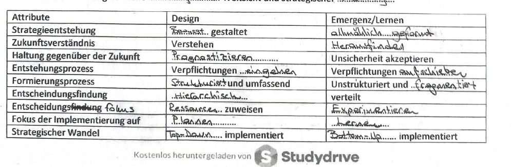 - …………………………. der Interdependenzen zwischen ……………………….. und Strategieumsetzung