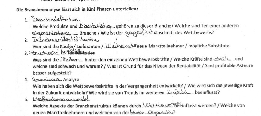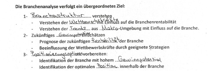 * Identifikation und ……………………. von ………………………….. als Hauptziel der Branchenanalyse.