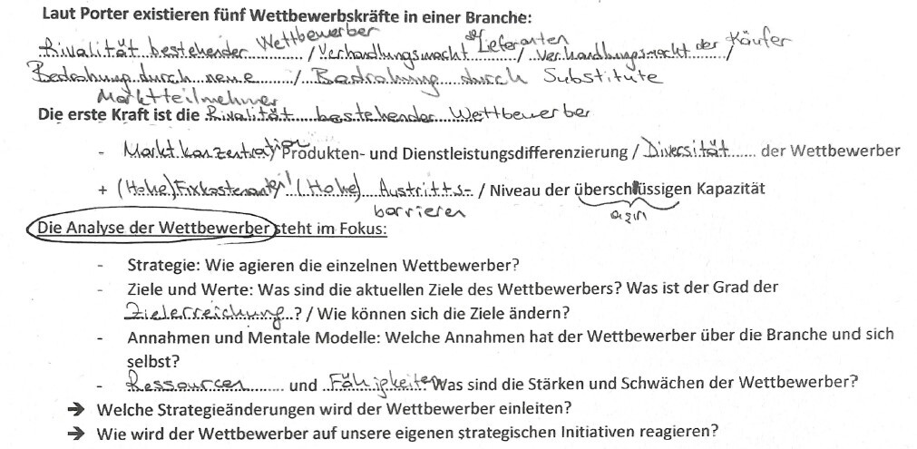 Was sind die ……………….. hinter den einzelnen Wettbewerbskräfte / Welche Kräfte sind …………….. und