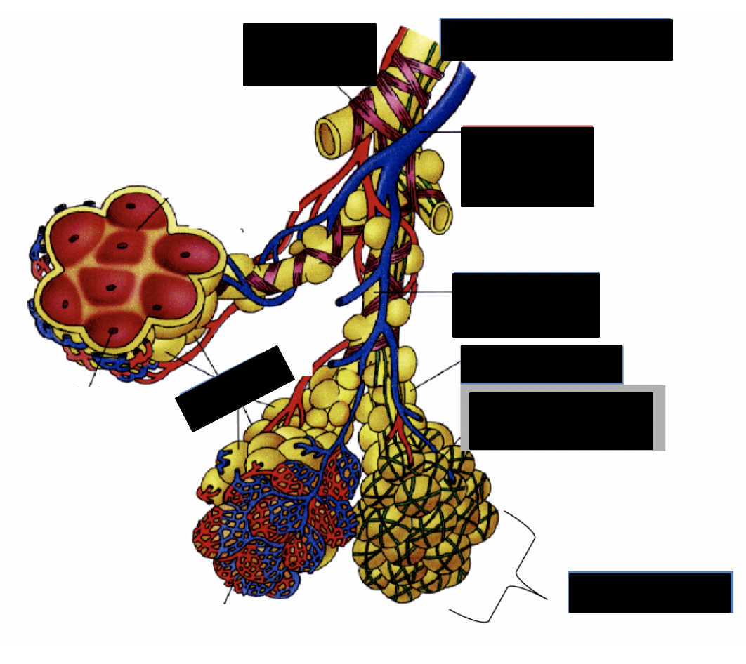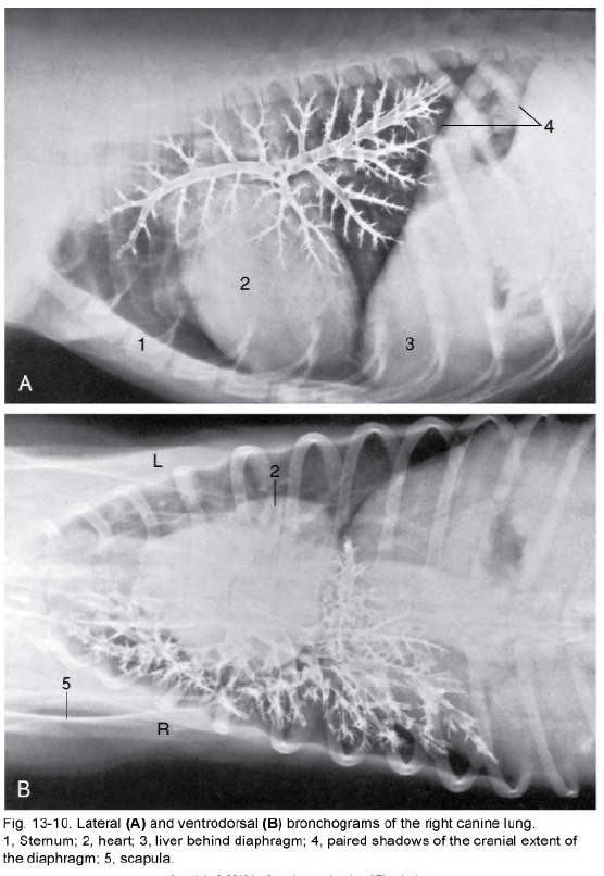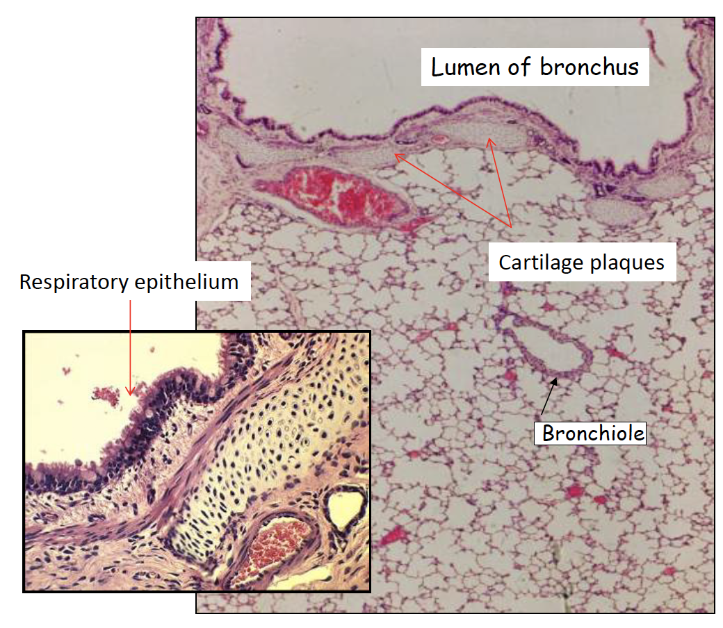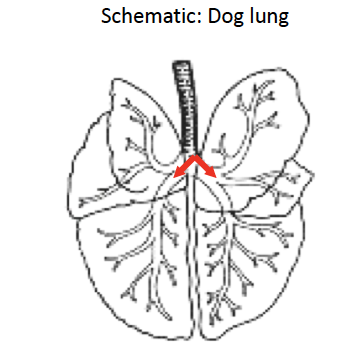 trachea –> left and right primary bronchus (+ tracheal bronchus)