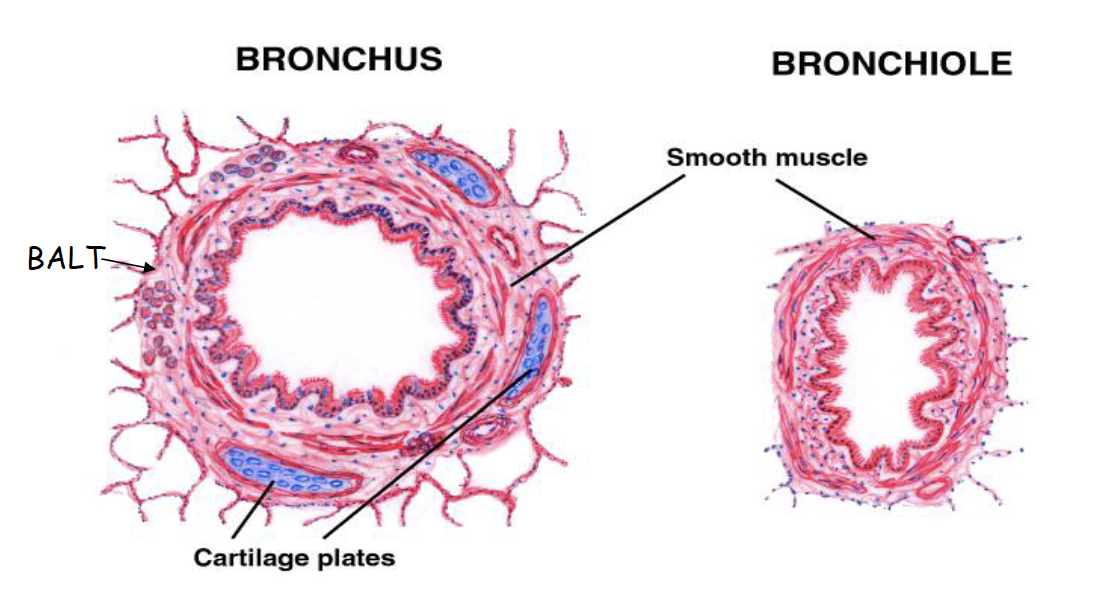 smooth muscle forms continuous spirals between cartilage and mucosa