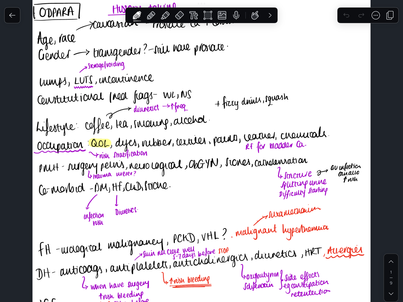 History for LUTS/urology in general