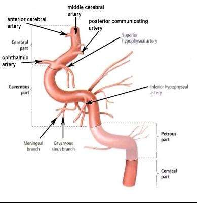 which artery is a branch of the ICA that occurs in the cavernous sinus?