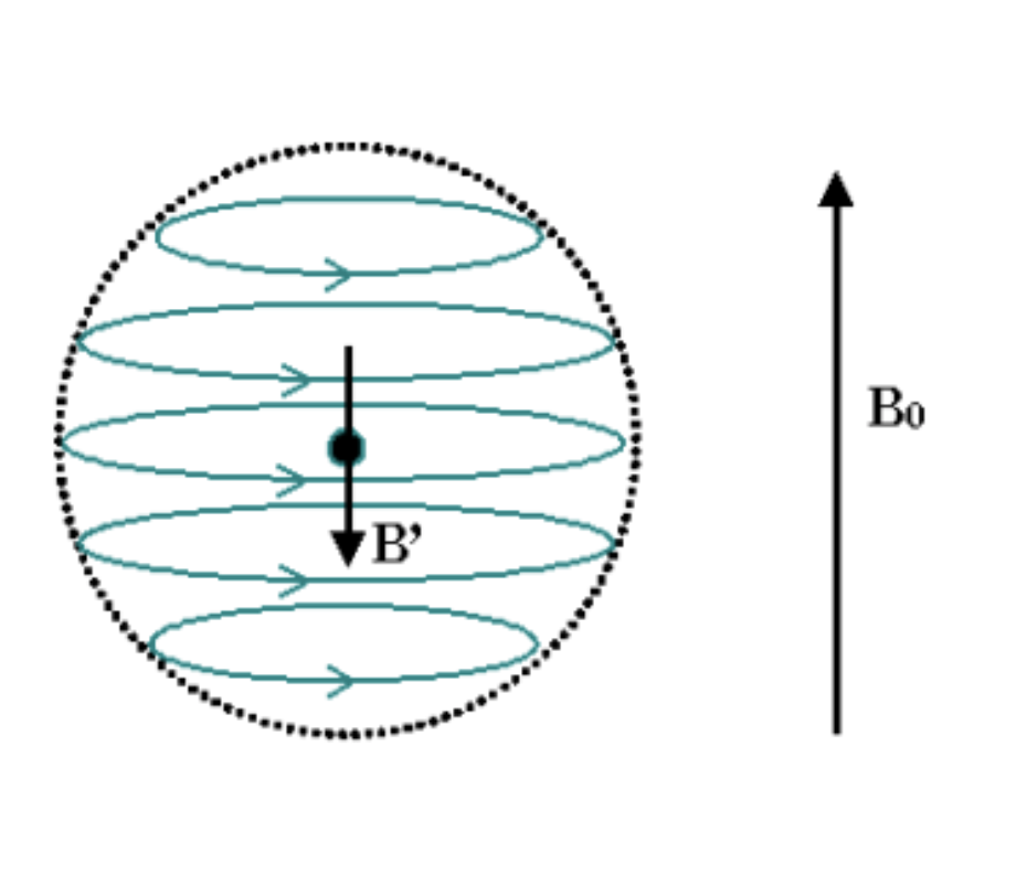 External magnetic field with strength B0 is applied to a diamagnetic substance. What happens?