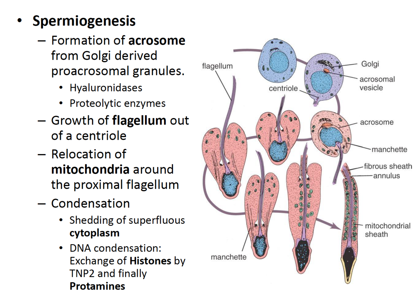 Describe the general steps of spermiogenesis (note: not spermatogenesis).