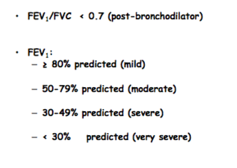 How do you assess the severity of COPD using FEV1/FVC?
