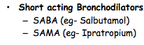 What are the short acting bronchodilators used in inhaled therapy in COPD?
