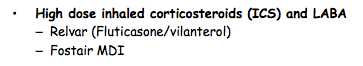 What are examples of High dose inhaled corticosteroids (ICS and LABA)