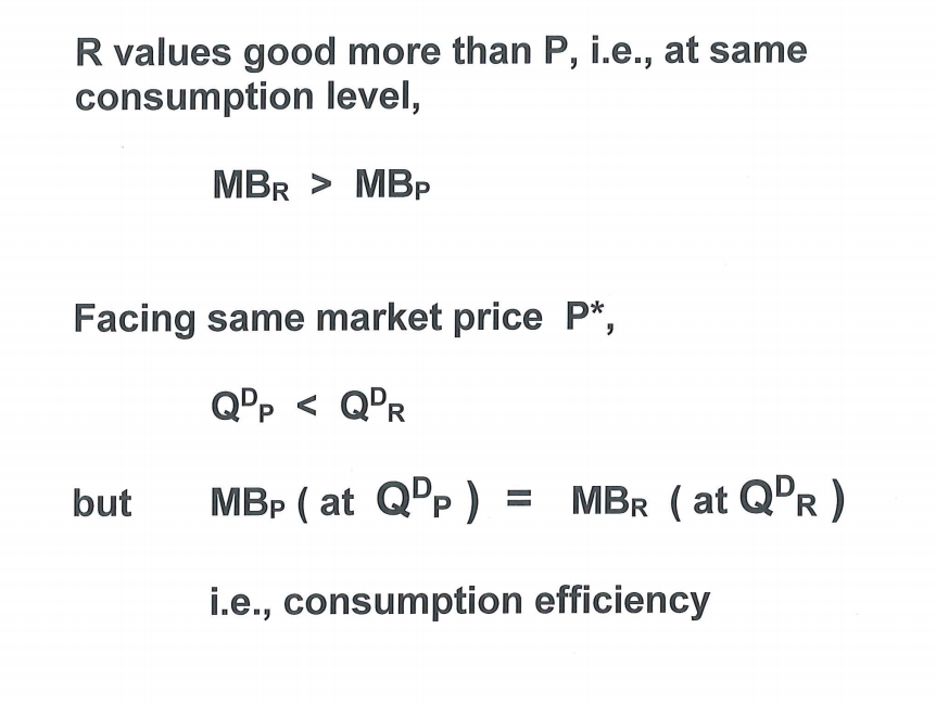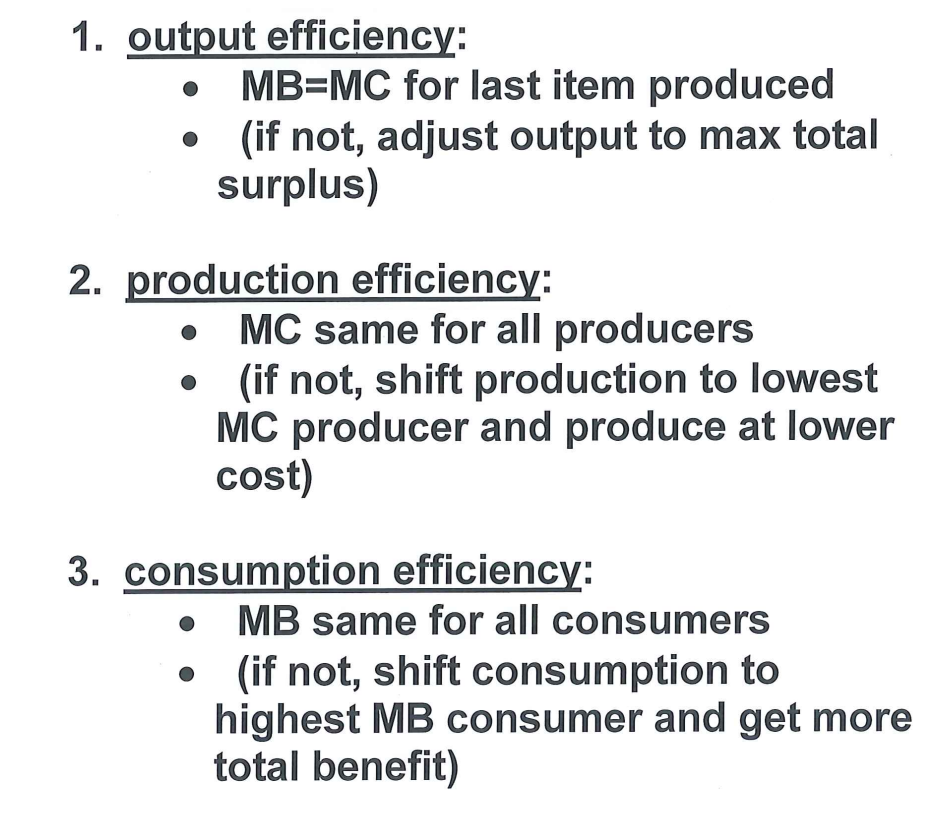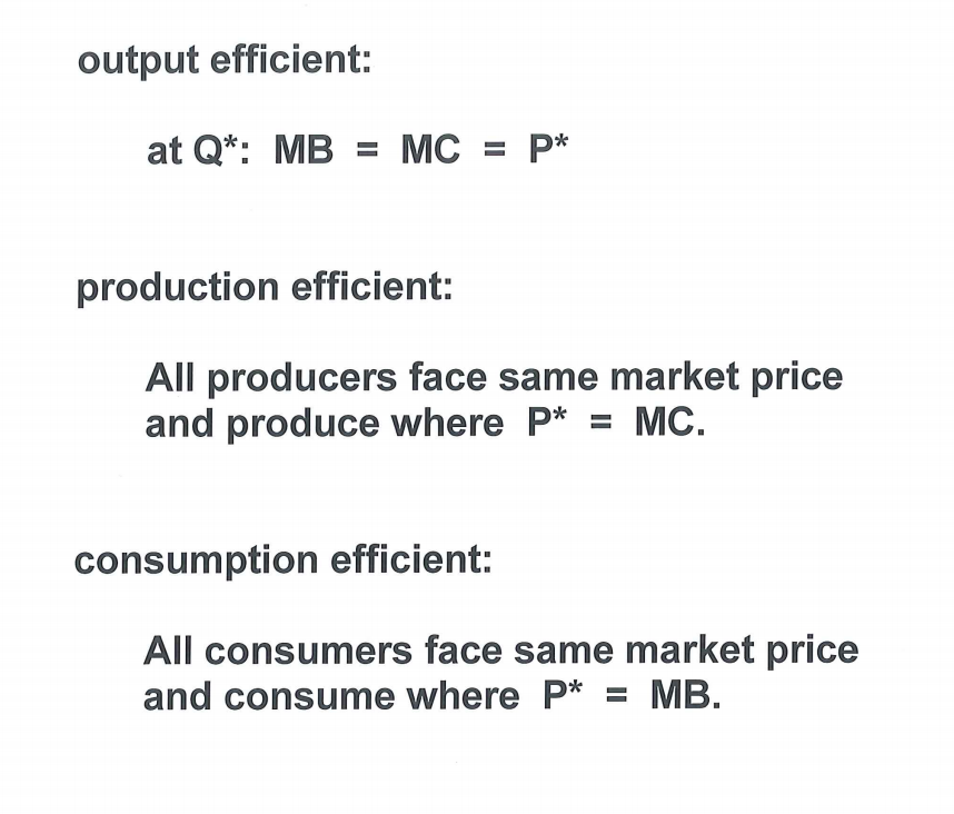 we can say that the competitive market is Pareto effiicient if these 3 Conditions for Efficient Outcomes including ____ are fulfilled